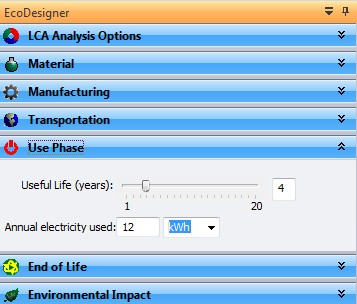 Solid Edge EcoDesigner, vous permet de définir la durée de vie estimée de votre produit ainsi que la quantité d'énergie électrique nécessaire à son utilisation..